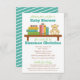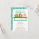 Cette invitation baby shower comporte une jolie bibliothèque avec une palette de couleurs amusantes et un ours en peluche. Idéal pour un baby shower à thème de livre. Inclut le texte d'une demande Livres pour bébé.