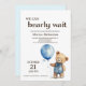 Fêtez l'arrivée prochaine d'un bébé garçon avec cette adorable invitation baby shower "We Can Bearly Wait" ! Doté d'un ours en peluche avec un ballon bleu, cette carte capture parfaitement la joie et l'anticipation de l'accueil d'un nouveau paquet de joie.