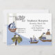 Ce design a trois modèles de navires avec un singe dans un arbre tropical sur une île. Vous pouvez utiliser l'avant et l'arrière pour ajouter des informations sur le baby shower.