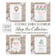 Cette invitation à baby shower de Noël budget est décorée de biscuits d'aquarelle, de saints, d'orteils, de baies et de typographie stylisée. Facile à personnaliser. Aquarelle originale © Michele Davies.