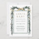 Cette élégante invitation au baby shower comprend une guirlande de pin de Noël aquarelle décorée de rubans rouges, de baies sèches, de verdure botanique et de calligraphie élégante. Pour une personnalisation plus avancée de cette conception, cliquez sur le lien "Customiser plus loin".