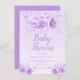 Elégant Baby shower Party Purple Floral modèle d'invitation. Doté d'un arrangement floral moderne.