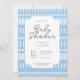 Invitation baby shower géométrique dans une palette de couleurs bleu ciel et blanc en duotone. À PROPOS : invitation de douche rayé, tribe marquage evite, invitation de baby boy party, carte linéaire mignonne, invitation de party neutre genre, simple spectacle bébé evite, invitation géométrique bleu bébé