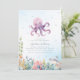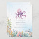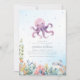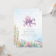 Invitation de baby shower de pieuvre amusante et super mignonne. Une pieuvre adorable prend le devant de la scène dans cette invitation aquarelle. Il y a aussi un requin souriant qui jette un coup d'œil depuis le coin et de petits hippocampes dans un récif de corail ! Cette invitation charmante est parfaite pour une fête sur le thème de la mer ou de l'océan. Voir les articles coordonnés dans notre boutique, Enchanted Finch..