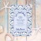 Invités Invitations à "shellabrer" votre baby shower avec cette invitation fantaisiste avec l'aquarelle abstraite coquilles de Saint-Jacques en bleu marine. Parfait pour les fêtes à thème plage, nautique et côtière. Art par KL Stock