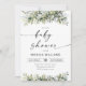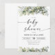Invitation Baby shower de plantes vertes. Cette invitation de mariage élégante et élégante présente de magnifiques aquarelles peintes à la main, une végétation fleurie d'eucalyptus. Trouvez les articles correspondants dans la collection de fleurs fraîches de plantes vertes.