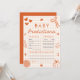 🍂 🧡 Ajoutez un souvenir sentimental à votre douche avec ce jeu de Baby shower Automne de prédictions pour bébés! Avec ses en vichy oranges aux citrouilles de gribouillis, ses tartes, ses arcs et ses accents de chute rustiques, cette activité invitation les invités à prédire le sexe du bébé, la date de naissance, le poids, la couleur des yeux et plus encore. Les clients peuvent également laisser des conseils et des souhaits doux pour les nouveaux parents, ce qui en fait un jeu sincère et garder le saké en un. Parfait pour un baby shower à tarte à petite croûte, un parfum de récolte d'automne ou un baby shower d'action de grâces, ce jeu de baby shower d'automne neutre pour les sexes coordonne magnifiquement avec les thèmes rustiques de la ferme et notre collection complète d'invitations, étiquettes de faveur, et des signes. Un ajout confortable et significatif à votre baby shower saisonnier. 🥧 ✨
