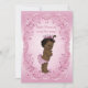 Élégante vintage Africaine Américaine / Ethnique princesse bébé invitations avec une belle illustration vintage d'une petite fille mignonne et adorable à la peau brune avec couronne rose stylisée princesse, babouches lapin doux, couche rose avec des rouffles et un arc rose dans ses cheveux sur un joli arrière - plan rose avec une classe, tourbillons ornés et frisson bordure. Chic, tendance, glamour, girly, amusant, à la mode, abordable fille invitations Baby showers pour vos douches à thème Princess. Impression recto verso. Si vous avez besoin d'aide pour customiser votre produit, veuillez me contacter par l'intermédiaire de mon magasin et je serai heureux de vous aider. Original : artwork©delightful-doodles.com. VEUILLEZ NOTER : - Toutes les invitations sur Zazzle ont des images imprimées plates.