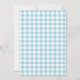 Bleu Balloon Calligraphie Script Baby shower Cartes d'invitation. Le chèque bleu en vichy arrière - plan au dos de la carte peut être redimensionné. Le bouquet de fleurs peut être enlevé.