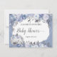 Profitez de cet élégant jeu de baby shower à fleurs d'automne, de petite fille ou de garçon, How Big Is Mommy's Belly? Feux à cordes sur le devant avec petit citrouille blanc et fleurs sous citrouille. Des fleurs bleues, violettes et blanches avec un arrière - plan bleu poussiéreux. Des modèles ont été fournis sur le dos.