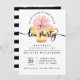 Joli thé à la vintage style floral chic thème genre neutre baby shower invitation design avec un pois jaune pâle pois vintage faux feuille or teacup avec une belle aquarelle rose fleur florale. Les touches d'or Faux sont intégrées dans la tasse pour créer un look vintage chic et classique. Belle fleur rose vif est imbriquée dans la tasse pour une touche féminine. L'envers de l'invitation de baby shower présente des rayures d'aquarelle noire et une fausse théière en feuille d'or qui contrastent magnifiquement avec l'avant de l'invitation. Toutes les illustrations contenues dans cette invitation à baby shower de fête du thé sont des oeuvres originales dessinées à la main par Moodthology. Vous pouvez customiser la taille du texte, la couleur du texte, la police et la mise en page de votre propre préférence de conception personnelle.