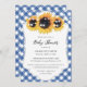 Invitation Baby shower de tournesol En vichy bleu rustique