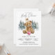 Bienvenue à ceux qui aiment avec cette charmante invitation de baby showers de vacances d'hiver avec un ours en peluche aquarelle dans un casquette tricot, avec un ornement rose, contre une pinède enneigée. Le style sobre et minimaliste donne une tonalité saisonnière chaleureuse tout en gardant l'accent sur votre célébration. Idéal pour les baby showers accueillis en hiver ou en période de Noël, ce design allie chaleur festive et détails doux et intemporels. Personnalisez le libellé pour convenir à votre réunion et le rendre unique.