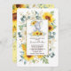 Cette belle invitation de baby shower comporte les tournesols d'aquarelle et la verdure magnifique et un éléphant mignon de bébé. Employez les gisements des textes pour personnaliser l'invitation avec vos propres mots et détails. Si vous voulez changer le placement de style de police, de couleur ou de textes, cliquez sur simplement la "personnaliser plus loin" se boutonnent.