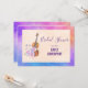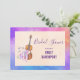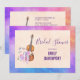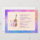 Une invitation à une baby shower avec un design féminin. Illustré avec une image aquarelle d'un violon en bois, quelques chaussons de ballet roses posés contre et décorés de fleurs et de papillons. Sur un fond aquarelle multicolore.