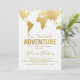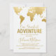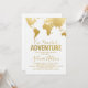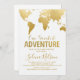 Aidons à célébrer la maman à être avec cette élégante invitation de baby shower de voyage avec une fausse carte du monde de feuille d'or.