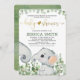 Invitation Baby shower d'éléphant - Préparez-vous à être tout oreille. Parce que tout est "irr-éléphant" quand un petit trésor est en route. Présentant cette magnifique invitation baby shower d'aquarelle verte et or. Doté d'un petit éléphant convivial et d'une douce verdure d'aquarelle. Sortez du troupeau et concentrez-vous sur la "défensive" à portée de main avec cette très mignonne invitation de baby shower neutre pour les sexes.
