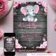 Facile modifiable/personnalisable, double taille Pink Invitation avec très mignon petit cacahuète/éléphant. Tous les éléments sont des aquarelles peintes si très mignon invitation baby shower/anniversaire/faire-part de naissance! Les articles correspondants sont disponibles sur demande !