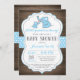 Invitation Baby shower d'éléphant rustique bleu