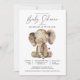 Annoncez votre arrivée à venir avec cette invitation baby shower élégante et sans distinction de genre. Le design moderne et simple présente un éléphant safari simple, mignon, aquarelle tricoté, alliant textures douces et lignes épurées pour un look adorable et fantaisiste. Que ce soit un thème d'arrivée de bébé en hiver, ou simplement un style confortable neutre pour les sexes, ce petit animal offre un joli petit thème de caractère pour votre célébration. Disponible en version imprimée, en téléchargement numérique ou les deux !
