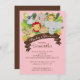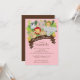 Commencez votre baby shower dans la jungle, votre baby shower de safari ou votre baby shower de zoo avec nos adorables petites invitations à la douche pour bébés animaux de la jungle. Notre invitation au baby shower safari moderne et élégante pour une petite fille ou une douche pour bébé comprend un joli zèbre, une girafe, un lion, un hippo, un singe, un tigre et un éléphant entourés de feuilles de palmiers de jungle avec une bannière marron moderne posée sur un arrière - plan rose clair. Idéal pour une douche bébé ou un baby shower non sexiste.