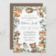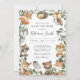 Invitation votre invité avec notre invitation à baby shower d'animaux de bois élégante et moderne comprend la végétation eucalyptus garland et animaux safari aquarelle. Personnalisez avec vos détails de baby shower dans une mise en page simple et élégante police de style manuscrite.