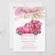 Filles Pink Floral Truckload Hearts Baby shower Invitation. Ce design a un camion rose rempli de coeurs roses. Une invitation de baby shower de nature.Changez la forme et le poids des cartes et ajoutez les détails de votre fête. Maman To Be sera ravie de cette mignonne invitation.