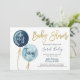 Invitation baby shower Boy Twins, ballons floraux bleu marine et bleu