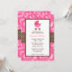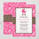 Une adorable invitation au baby shower de camouflage rose et marron avec une poussette rose sur un arrière - plan de camouflage rose. Parfait pour un baby shower de fille. Élégant et mignon.