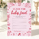 Ajoutez un moment ludique et plein de rires à votre célébration avec ce jeu de Baby Shower "Devinez la nourriture pour bébé de la Saint-Valentin dessinée à la main rose" ! Conçu dans une esthétique charmante de coquette rose et rouge de la Saint-Valentin, ce jeu présente des cœurs dessinés à la main fantaisistes, des nœuds, des cupidons, des floraisons et des gribouillis doux de la Saint-Valentin qui se coordonnent parfaitement avec votre thème de Baby Shower "Un petit cœur".