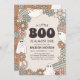 Invitations amis et famille pour fêter un petit en chemin avec cette invitation baby shower à thème rétro fantôme.