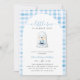 Vous cherchez le moyen idéal pour invitations proches à votre baby shower cet automne? Cette invitation charmant "A Little Boo is Quasi Due" est un incontournable pour les mamans qui fêtent un petit garçon avec une touche d'Halloween ! Avec un fantôme souriant et doux tenant un citrouille sur un arrière - plan bleu en vichy doux, il est ludique, moderne et totalement adorable. Que vous planifiez un thème éffrayant-mignon ou que vous aimiez simplement l'atmosphère cosy de l'automne, cet invitation vous donnera le ton pour une journée magique. Vos invités l'adoreront - et vous aussi !