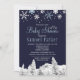 Style rustique élégant bébé garçon douche hiver chic invitation modèle avec bordures de flocons blancs, chute de neige et pins paysage merveilleux sur minuit sombre arrière - plan bleu marine. Remplissez vos informations dans les zones, Vous pouvez choisir de le customiser en changeant encore les polices et les couleurs du lettrage. — Veuillez noter que la couleur arrière - plan est modifiable des deux côtés. Pour le modifier, sélectionnez l'option PERSONNALISER. — L'invitation est appropriée pour les élégantes montagnes rustiques hiver / Noël baby showers fêtes. — Si vous avez besoin d'aide, s'il vous plaît contactez-moi!