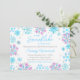 Cette invitation élégante et séduisante présente des flocons de neige couleur violet et bleu turquoise en faux parties scintillant et des étincelles sur un arrière - plan blanc. Il est parfait pour un baby shower à thème d'hiver ou de Noël.