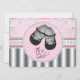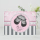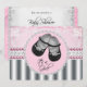 Chaussures de bébé noires adorables, invitation de baby shower élégante avec diamants et perles roses et gris argenté. Cette invitation de baby shower pour petite fille est facilement personnalisable pour votre événement.