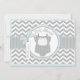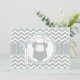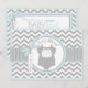 La copie grise et blanche chic de chevron avec des bleus layette contrastent et un pullover mignon de point de polka avec une arc-cravate et un arc 3D-look et ruban pour une carte d'invitation de baby shower de garçon.