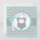 Pullover doux d'impression de point de polka avec la cravate d'arc sur la corde à linge et l'arc 3D-look et ruban pour une carte d'invitation de baby shower de garçon. Les couleurs sont des aquas et des gris.