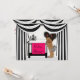 Zebra Print Vintage African American Baby debout près du lit d'enfant et draps rayés noir et blanc