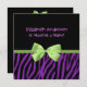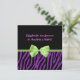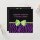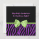Une invitation à baby shower d'impression zébrée violette et noire à la mode avec un joli ruban vert enveloppé comme un cadeau. Personnalisez pour invitation vos invités à assister.