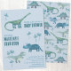 Petits dinosaures amusants, Tyrannosaurus Rex, Tricératops et Diplodocus pour accueillir un petit dans le monde. Baby shower neutre pour les femmes. Modifiez le nom et les détails pour personnaliser. L'arrière dispose d'un motif de dinosaures assorti. Art original de Nic Squirrell.