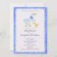 Jetez le baby shower d'oie sot le plus mignon avec ces invitations de douche bébé d'oie sotte bleue. Ces invitations disent : "Une oie stupide sur le point d'être en liberté !". Customisez ces invitations de baby showers d'oies de pays bleu en modifiant le texte et en ajoutant vos informations. Illustration d'oie dessinée à la main par OhMyStarling.