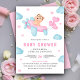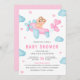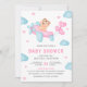 Invitation Baby shower d'ours en peluche de fille d'avion ros