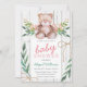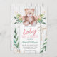 Invitation au Baby shower de l'ours en tourbe de bois rustique. Aquarelle & collage style technique. Doté d'ours mignon aux feuilles floraux verdoyants sur panneau en bois blanc rustique.