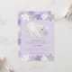 Jetez le plus beau baby shower à thème d'ours polaire d'hiver jamais avec cette adorable invitation personnalisée de baby shower. Ces invitations personnalisées pour bébé douche sont entièrement personnalisables! Vous pouvez modifier le texte en cliquant sur "personnaliser ce modèle". Cet invitation de baby shower d'ours polaire présente une élégante bordure de flocon de neige en parties scintillant violet, blanche et argentée ainsi qu'une illustration originale d'ours polaire par OhMyStarling. La carte de baby shower d'hiver est dotée d'un arrière - plan violet clair, idéal pour une soirée baby shower à thème animal arctique. L'arrière de ces invitations de baby showers fêtes ont un motif répété à la parties scintillant violet, blanc et argent.