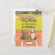 Basket Them Boy's Baby Shower Invitations avec un petit garçon mignon portant un casquette de baseball assis à côté de son ami ours en peluche sur le terrain de baseball.