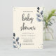 Elégante invitation au baby shower avec typographie élégante et de jolis éléments botaniques.