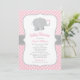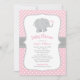 Invitation Baby Shower Élégant Éléphant Rose Fille