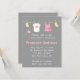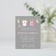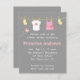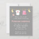 Il y a quelque chose juste si mignonne au sujet de mini vêtements et accessoires de bébé ! Et cela lui fait une conception merveilleuse et attrayante pour un invitation adorable de baby shower. La conception inclut des articles mignons de bébé comme les chaussettes jaunes de bébé, une salopette blanche de bébé avec la forme de coeur et une robe rose avec le ruban accrochant tout sur une corde à linge avec les chevilles en bois. Un petit papillon vole par. Les couleurs en pastel se tient juste sur l'arrière - plan gris et lui donne une élégance. Personnalisez facilement avec vos détails de partie.
