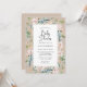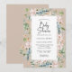 Carton d'Invitation pour Baby-Shower Élégant Mixte. Cette invitation élégante pour baby-shower présente de magnifiques lis de printemps rose poudré peints à la main à l'aquarelle, des fleurs sauvages estivales bleu poussiéreux et de la verdure botanique sauge.