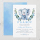 Invitation Baby shower Eléphant Bleu Cute - Waterc